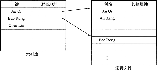 变长记录文件只能顺序查找,系统开销较大。为此可以建立一张索引表以加快检索速度,索引表本身是定长记录的顺序文件。在记录很多或是访问要求高的文件中,需要引入索引以提供有效的访问。实际中,通过索引可以成百上千倍地提高访问速度。